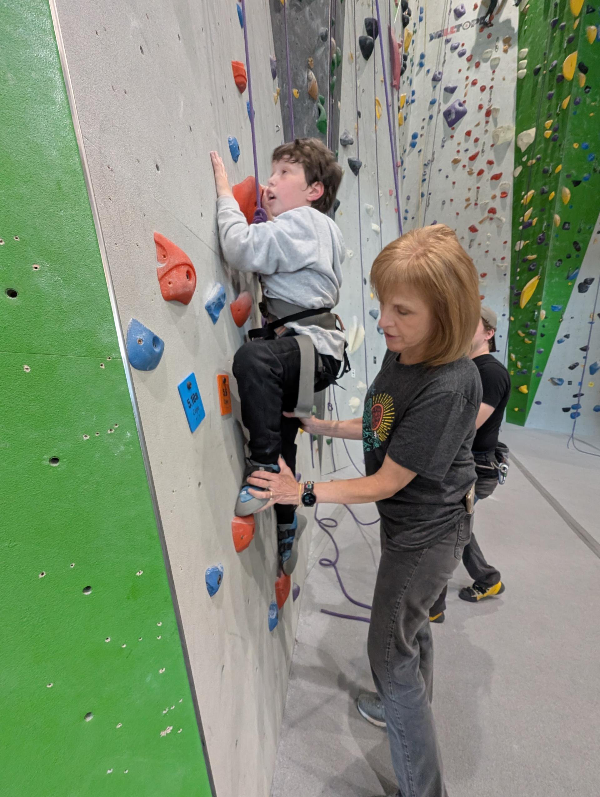 Recently, Dr. Cynthia Kays, a physical therapist who has served over five years with Wise County Public Schools (and over 21 in the state of Virginia), took Roan to Onsight Rock Gym in Knoxville, Tennessee. There, he got to climb with Tyler (pictured left), “Mrs. Kays’ son,” scaling more than 25 feet up a 60-foot rock wall. His biggest takeaway? “It was much easier to climb up than to come down!” he laughed.