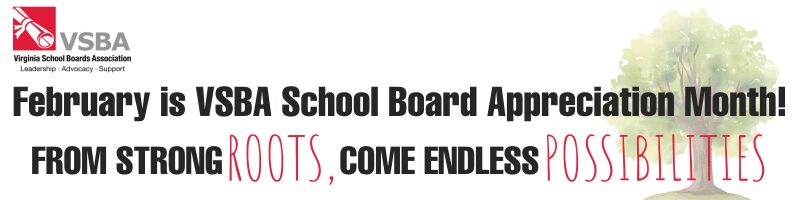 The month of February is deemed School Board Appreciation Month by the Virginia School Board Association (VSBA). The theme – From Strong Roots, Come Endless Possibilities – highlights the vital role school board members play in planting the seeds for student success—ensuring every student has the resources needed to grow, thrive, and reach their full potential.