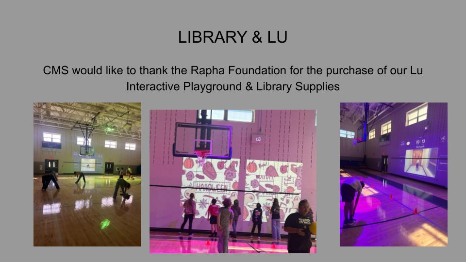 Mr. Mooney thanked the Rapha Foundatin for the purchase of the Lu Interactive Playground andl library supplies.